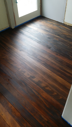 While many of our jobs may comprise new installations, there will be a substantial number of repair and refinish flooring projects as well. Part of the attraction of solid wood is the ability to refinish it many times over the years, each time creating a fresh, new-looking floor. As part of refinishing, the floor specialist replaces damaged planks, sands away the old finish and applies new stain and topcoat. We are skilled at matching and blending wood stains, and applying a flawless finish to unfinished flooring.